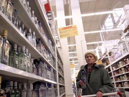 10月31日,一名消費者在俄羅斯首都莫斯科一家超市選購酒。俄羅斯各地自2006年8月以來一再發(fā)生假酒中毒事件,目前中毒人數(shù)仍在不斷增加,其中已有118人死亡。