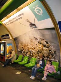煙草中毒是危害公眾健康的主要?dú)⑹。法?guó)政府采取了種種禁煙措施,希望還民眾一個(gè)沒(méi)有香煙污染的公共空間。這張?jiān)诜▏?guó)地鐵宣傳海報(bào)上寫著:在地鐵里,現(xiàn)代人不會(huì)煙熏同類。