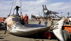 冰島于10月宣布恢復(fù)商業(yè)捕鯨活動(dòng)。自那以后冰島已捕殺了五頭長須鯨,根據(jù)其“配額”,今年還可以再捕殺四頭。 |