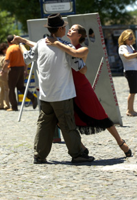 在有阿根廷探戈發(fā)祥地之稱的布宜諾斯艾利斯市博卡老港區(qū),一名當地探戈舞女在與外國旅游者拍攝紀念照。 12月的阿根廷,風和日麗,享譽世界的探戈舞更吸引了遠道而來的大批歐美度假者。首都布宜諾斯艾利斯市的各等級酒店已經預定爆滿,入住率達到90%以上。