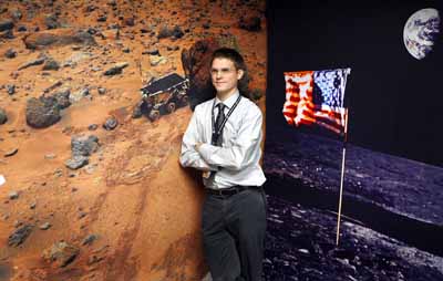 18日,在美國(guó)加利福尼亞州,美國(guó)宇航局艾姆斯研究中心戰(zhàn)略商業(yè)發(fā)展部主任克里斯·肯普在1996年拍攝的火星表面照片(左)和1968年拍攝的月球和地球照片(右)前留影。網(wǎng)絡(luò)搜索引擎谷歌(Google)將和美國(guó)宇航局合作,在網(wǎng)絡(luò)上提供美國(guó)宇航局發(fā)布的圖片,三維地圖和航天飛機(jī)的實(shí)時(shí)信息。 |