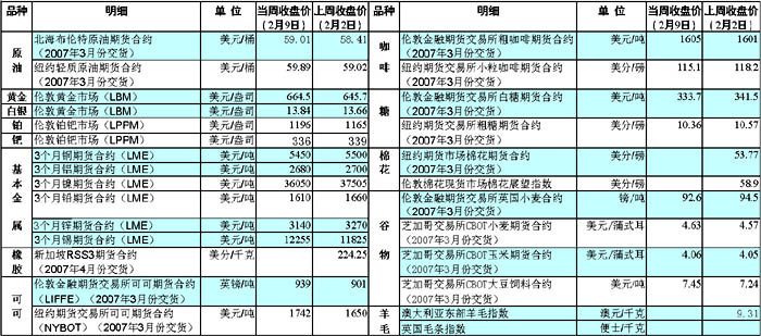 市場(chǎng)人士認(rèn)為,西非最近的干熱天氣可能會(huì)影響可可產(chǎn)量,引起西非供應(yīng)短缺,可可價(jià)格升至7個(gè)多月來(lái)最高水平。在國(guó)際糖組織(ISO)調(diào)高了2007年的供應(yīng)預(yù)測(cè)后,倫敦和紐約兩地的糖價(jià)均有所下滑,紐約市場(chǎng)的糖價(jià)跌至4個(gè)半月來(lái)最低點(diǎn)。由于美國(guó)農(nóng)業(yè)部調(diào)低了2006至2007年度全球小麥的庫(kù)存量,芝加哥市場(chǎng)的谷物類(lèi)價(jià)格上揚(yáng)。