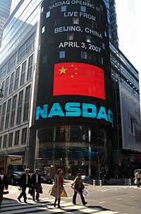 4月4日,全球最大的電子股票交易所——美國納斯達克股票市場公司正式宣布推出納斯達克中國指數(shù)(NASDAQ China