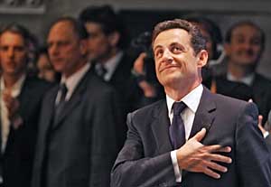 6日,在法國首都巴黎,人民運動聯(lián)盟主席薩科齊在競選結(jié)果揭曉后接受支持者的祝賀。根據(jù)法國內(nèi)政部7日凌晨公布的總統(tǒng)選舉第二輪投票最終結(jié)果,薩科齊以53.06%的得票率當(dāng)選新一任法國總統(tǒng)。新華社/法新 | 經(jīng)濟政策務(wù)實可行