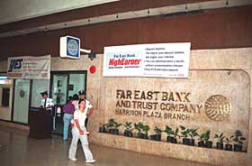 1998年菲律賓金融市場動蕩,對銀行業(yè)是一個巨大挑戰(zhàn)。為了穩(wěn)定人心,爭取各戶,各銀行都貼出了告示。本報資料照片 | “三明治”先生
