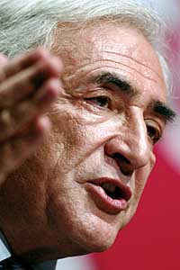 斯特勞斯-卡恩。本報(bào)資料照片 | 國際貨幣基金組織(IMF)新總裁的人選問題10日泛起波瀾。 當(dāng)天,歐盟27國財(cái)長基本同意推舉法國前財(cái)政部長多米尼克·斯特勞斯-卡恩接任國際貨幣基金組織總裁一職。但國際貨幣基金組織執(zhí)行董事會(huì)卻在同日發(fā)表的一份聲明中表示,該組織新總裁人選將不受國籍限制,任何一名執(zhí)董會(huì)成員都可提名自己中意的總裁人選。這份聲明所傳達(dá)的信息無疑為IMF新總裁的人選問題增添了不少變數(shù)。 現(xiàn)任國際貨幣基金組織總裁西班牙人羅德里戈·拉托的任期應(yīng)到2009年5月,但他在6月28日突然宣布,出于“個(gè)人原因”,他本人將于今年10月提前離職。 按照慣例,國際貨幣基金組織總裁由歐洲人擔(dān)任,而世界銀行行長則由美國人擔(dān)任。不過,一些發(fā)展中國家認(rèn)為,這種傳統(tǒng)有悖公平,在他們的要求下,國際貨幣基金組織理事會(huì)將于下星期在華盛頓開會(huì)討論此事。 歐盟財(cái)長會(huì)議9日在布魯塞爾舉行,路透社援引歐盟輪值主席國葡萄牙政府官員的話說,歐盟各國的財(cái)長們?cè)?0日的午餐會(huì)上討論了國際貨幣基金組織總裁的人選問題。此前,法國總統(tǒng)薩科齊提議,由法國前財(cái)政部長多米尼克·斯特勞斯-卡恩接替拉托。路透社援引一些外交人士的話說,薩科齊的這一舉動(dòng)明顯是想在其他候選人名字浮出水面前占得先機(jī)。另有批評(píng)者指出,薩科齊提名這位在野黨的重要人物,其目的在于削弱社會(huì)黨在法國國內(nèi)的力量。 10日當(dāng)天,歐盟輪值主席國葡萄牙在財(cái)長會(huì)議結(jié)束前披露給媒體的消息中說,推選斯特勞斯-卡恩擔(dān)任這一職務(wù)已獲得歐盟財(cái)長們的首肯。法國財(cái)長克里斯蒂娜·拉加德也在會(huì)議間隙向媒體記者證實(shí),斯特勞斯-卡恩已成為歐盟推舉的國際貨幣基金組織新總裁正式人選。拉加德說,斯特勞斯-卡恩因?yàn)榫邆溥^人的才干和豐富的國際事務(wù)經(jīng)驗(yàn),贏得了其他成員國的廣泛支持。 不過,國際貨幣基金組織執(zhí)行董事會(huì)當(dāng)天發(fā)表聲明表示,該組織新總裁人選將不受國籍限制,任何一名執(zhí)董會(huì)成員都可提名自己心目中的總裁人選。聲明稱,國際貨幣基金組織將采取“開放和透明”方式盡快選出新總裁,而總裁提名對(duì)所有國籍人士開放,這符合該組織的相關(guān)規(guī)定。就在歐盟決定推舉斯特勞斯-卡恩的當(dāng)口兒,國際貨幣基金組織執(zhí)行董事會(huì)作出這一表態(tài),對(duì)歐盟來說無疑是個(gè)巨大挑戰(zhàn),給新任國際貨幣基金組織總裁人選增加了不少變數(shù)。 事實(shí)上,就在歐盟此次推舉基金組織新總裁人選的過程中,外界呼吁應(yīng)當(dāng)打破舊規(guī)矩,考慮由非歐洲人接任。英國財(cái)政大臣阿利斯泰爾·達(dá)林就表示,基金組織總裁的選任應(yīng)當(dāng)任人唯賢,而不應(yīng)再局限于歐洲人。 另據(jù)英國廣播公司報(bào)道,歐盟各成員國也在此次財(cái)長會(huì)議上同意,今后基金組織總裁人選將向非歐洲國家開放。 斯特勞斯-卡恩現(xiàn)年58歲,曾于1997年至1999年在利昂內(nèi)爾·若斯潘領(lǐng)導(dǎo)的政府中任財(cái)政部長。