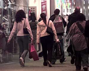 圖為幾位美國(guó)新澤西州的居民購(gòu)物后離開商場(chǎng)。分析人士認(rèn)為,美國(guó)次級(jí)抵押貸款危機(jī)對(duì)約占美國(guó)國(guó)內(nèi)生產(chǎn)總值2/3的個(gè)人消費(fèi)開支的影響不是很大。本報(bào)資料照片 | 美國(guó)經(jīng)濟(jì)對(duì)樓市依賴度有限