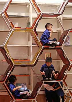 為了給天才少年提供更有利于他們成才的環(huán)境,一對富有的夫婦賈尼絲和羅伯特·戴維森去年在里諾成立內(nèi)華達戴維森學(xué)院,免費招收11至16歲至少需要連跳三級的高智商孩子。 學(xué)院現(xiàn)有學(xué)生45名,堪稱全美最聰明的孩子,包括州象棋比賽冠軍、“發(fā)現(xiàn)”頻道“小科學(xué)家挑戰(zhàn)賽”跨年齡組優(yōu)勝者、內(nèi)華達拼詞比賽跨年齡組獲獎?wù)叩。布拉西爾和奧斯瓦爾德-塞利斯先后來到這所學(xué)院。 學(xué)院在教育界引起廣泛關(guān)注。許多學(xué)校反對依據(jù)學(xué)生能力分類教學(xué),因為這有違社會公平。但在戴維森學(xué)院,課程只有英語、數(shù)學(xué)和科學(xué),每門課分三個難度等級,學(xué)生根據(jù)自己水平,可以在上高難度英語班的同時,選擇低難度的數(shù)學(xué)班,十分靈活。 學(xué)院還設(shè)有一個“戴維森學(xué)院人才發(fā)展”項目,每年資助1200名需要幫助的高智商學(xué)生,他們或是希望能說服校方同意跳級,或是渴望與同樣高智商的孩子溝通交往。他們中大多數(shù)人正在普通班級里浪費時間,這令羅伯特·戴維森很是心痛:“把一個已具備良好閱讀能力的孩子硬送進幼兒園,這簡直是犯罪……這是情感折磨!” 羅伯特認為自己對天才少年的所作所為,類似于文藝復(fù)興時期對藝術(shù)家、發(fā)明家的資助。他對天才的看法有一個簡單的比喻:教育工作者總是希望能有一個均衡的結(jié)果,“但這是不可能的。我希望自己能有邁克爾·喬丹那樣的籃球天賦,可我永遠都不可能擁有”。 由于學(xué)院里的學(xué)生智商差不多,他們不再覺得自己高人一等,有時甚至?xí)牭竭@樣的話:“我并不像我想像得聰明,還有人數(shù)學(xué)比我更好,這在以前從未發(fā)生過! 雖然這些孩子仍偏好個人運動,比如攀巖,但彼此關(guān)系遠比在普通學(xué)校融洽得多,在排球之類的集體項目中也能團結(jié)協(xié)作。一名在其他學(xué)校常遭欺負的學(xué)生說:“我不敢說在這里有很多朋友,但至少沒有人仇視我!