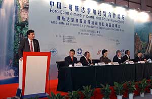 25日,中國(guó)—哥斯達(dá)黎加經(jīng)貿(mào)合作論壇暨哥斯達(dá)黎加投資環(huán)境和出口商品說(shuō)明會(huì)在北京舉行。本報(bào)記者 文婧