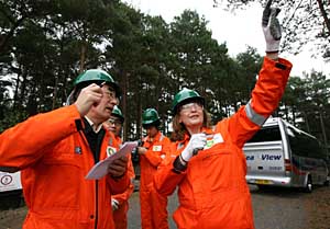 威奇法姆油田環(huán)境和通信主管Suzie Baverstock(右)向本報記者吳定保(左)介紹情況。本報記者 謝秀棟