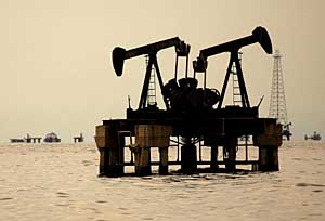 圖為委內(nèi)瑞拉馬拉開波湖上的石油開采設(shè)備。本報(bào)資料照片 | 本報(bào)羅馬電
