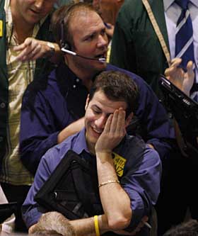 圖為交易員在美國紐約商品交易所中工作。由于市場擔(dān)心次貸危機(jī)繼續(xù)惡化,12日紐約股市全面下跌。新華社/法新 | 歐美投行次貸損失浮出水面