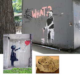 “本克西”的發(fā)言人沒(méi)有確認(rèn)照片上的人就是“本克西”本人!拔覀儚牟豢隙ɑ蚍裾J(rèn)任何一幅照片上的人是他本人!边@名發(fā)言人說(shuō)。 “本克西”不僅是名涂鴉藝術(shù)家。他對(duì)繪畫(huà)、雕塑、裝置藝術(shù)和行為藝術(shù)都有涉獵。他的作品想像力豐富,往往與時(shí)事政治聯(lián)系緊密,幽默而又發(fā)人深省。一些政府部門(mén)視他的作品為嘲諷時(shí)政的異類。 雖然受到政府官員冷遇,“本克西”的作品卻很受藝術(shù)品拍賣界追捧,擁有不少明星“粉絲”。美國(guó)歌星克里斯蒂娜·阿奎萊拉曾花25萬(wàn)英鎊買(mǎi)下“本克西”一幅作品。此后他的作品價(jià)格一路飆升,一套以名模凱特·莫斯為題材的作品在2006年10月以50萬(wàn)英鎊的價(jià)格拍出。 今年10月,好萊塢明星布拉德·皮特和安吉莉娜·朱莉花費(fèi)100多萬(wàn)美元從美國(guó)紐約市一個(gè)拍賣會(huì)上購(gòu)得一系列“本克西”的作品。 “本克西”涂鴉的手段被稱為“模版涂鴉”。涂鴉者事先在紙板等媒介上挖出涂鴉的畫(huà)面,制作出模版。涂鴉時(shí)將模版貼在墻上,在挖空的部分用刷子涂上顏料或噴涂顏料。為創(chuàng)造透視或多種彩色等效果,一幅涂鴉有時(shí)需要多層模版和反復(fù)涂色。拍賣行拍賣的“本克西”作品其實(shí)就是他為涂鴉制作的模版。 “本克西”還經(jīng)常在作品中表達(dá)對(duì)國(guó)際政治的看法。他曾在一處迪斯尼樂(lè)園放飛一個(gè)美軍關(guān)塔那摩監(jiān)獄囚徒形象的充氣玩偶。他還在以色列修建的隔離墻上噴涂多幅作品,其中一幅涂鴉上,隔離墻被打開(kāi)一個(gè)大洞,洞中是藍(lán)天。 對(duì)于自己的作品被高價(jià)搶購(gòu),“本克西”沒(méi)有表現(xiàn)出任何喜悅之情。在他的個(gè)人網(wǎng)站上,這名英國(guó)最神秘的涂鴉藝術(shù)家說(shuō):“我不能相信你們這些傻瓜居然買(mǎi)我的破畫(huà)! |