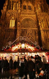 24日,人們在法國斯特拉斯堡的“圣誕市場”上購物參觀。斯特拉斯堡的“圣誕市場”當(dāng)天開市。它作為法國最大也是最古老的“圣誕市場”,每年都吸引上千人前來購物參觀。