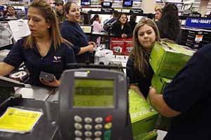 為了在相對(duì)蕭條的購物季中爭(zhēng)奪購物者,美國商家使出渾身解數(shù),希望顧客購買自家商品。 據(jù)報(bào)道,世界最大零售商美國沃爾瑪公司今年的特賣活動(dòng)在本月2日提前開始。為了推動(dòng)同店銷售額增長,沃爾瑪公司今年提前推出折扣,其中玩具折扣在10月初就開始實(shí)施。同店銷售額指開業(yè)一年以上店鋪的銷售額,是衡量零售企業(yè)持續(xù)運(yùn)營狀況的關(guān)鍵指標(biāo)。 還有報(bào)道說,很多大型購物廣場(chǎng)發(fā)起了名目繁多的促銷活動(dòng),竭力營造節(jié)日氣氛,提醒顧客不要忘記傳統(tǒng)的圣誕節(jié)慶祝方式。這些活動(dòng)包括讓顧客與圣誕老人親密合影、組織人現(xiàn)場(chǎng)唱圣誕頌歌以及現(xiàn)烤現(xiàn)賣圣誕糕點(diǎn)等。 此外,隨著網(wǎng)上購物行業(yè)日趨成熟,在網(wǎng)上購物的消費(fèi)者數(shù)量增長逐漸放緩,網(wǎng)絡(luò)零售商今年面臨更加激烈的競(jìng)爭(zhēng)。玩具銷售網(wǎng)站eToys.com推出了“兩天特賣”活動(dòng),網(wǎng)絡(luò)珠寶銷售商Blue
