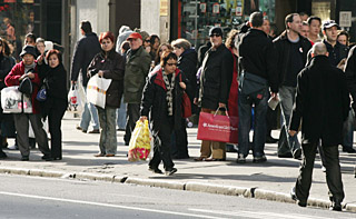 | 消費者手持購物袋在美國紐約曼哈頓的第五大道穿行。新華社/法新(資料照片) | 本報華盛頓電