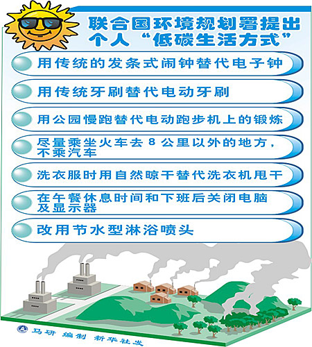聯(lián)合國環(huán)境規(guī)劃署提出個人“低碳生活方式”