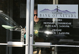 25日,在美國內(nèi)華達州首府卡森城的內(nèi)華達州第一國民銀行,一名調(diào)查人員鎖上大門。新華社/美聯(lián) | 對美國銀行業(yè)來說,這個夏天格外“冷”。7月初,加利福尼亞州印地麥克(IndyMac)銀行因財政困難被聯(lián)邦政府接管,成為美國歷史上第三大破產(chǎn)銀行。25日,又有兩家小銀行——內(nèi)華達州的第一國民銀行和加州的第一傳統(tǒng)銀行宣布破產(chǎn)。至此,今年以來美國已有7家銀行破產(chǎn)。