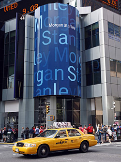 17日,一輛出租汽車駛過位于美國紐約的摩根士丹利大樓。新華社/路透 | 由于美國政府16日(以下均為當(dāng)?shù)貢r間)拯救美國國際集團(tuán)(AIG)的舉措未能緩解全球金融市場的信心危機(jī),17日英美股市均大幅下挫,金融板塊更是遭受沉重打擊。股價暴跌令許多潛在的銀行間并購交易浮出水面,盡管部分交易目前尚未敲定,但毫無疑問的是,這場百年一遇的金融風(fēng)暴將帶來一次英美乃至全球金融行業(yè)的大洗牌。