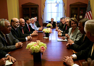18日,在美國(guó)首都華盛頓,美國(guó)財(cái)政部長(zhǎng)保爾森(左三)、美聯(lián)儲(chǔ)主席伯南克(左二)與美國(guó)國(guó)會(huì)領(lǐng)導(dǎo)人舉行閉門會(huì)談。新華社/路透 | 華爾街日前的“金融海嘯”讓美國(guó)金融體系重新洗牌,也迫使美國(guó)政府迅速推出新的救援計(jì)劃,擬動(dòng)用7000億美元的資金購(gòu)買金融機(jī)構(gòu)不良資產(chǎn),這也是上世紀(jì)30年代經(jīng)濟(jì)大蕭條以來(lái)美國(guó)政府最龐大的救援計(jì)劃。 美國(guó)政府此舉也是迫不得已。美國(guó)素來(lái)標(biāo)榜自己是自由市場(chǎng)經(jīng)濟(jì),但隨著次貸危機(jī)向縱深發(fā)展,房利美、房地美、雷曼兄弟、美國(guó)國(guó)際集團(tuán)等眾多金融巨頭倒下,市場(chǎng)信心瀕于崩潰。 據(jù)美國(guó)官員透露,美國(guó)財(cái)政部過(guò)去數(shù)周一直在研究這項(xiàng)計(jì)劃,但因顧慮可能遭到外界強(qiáng)烈反對(duì)一直秘而不宣;但由于近來(lái)華爾街局勢(shì)急轉(zhuǎn)直下,為防范危機(jī)進(jìn)一步蔓延,政府已別無(wú)選擇。美國(guó)總統(tǒng)布什解釋說(shuō),他最初也希望讓市場(chǎng)發(fā)揮作用,但“當(dāng)認(rèn)識(shí)到問(wèn)題正變得多么嚴(yán)重時(shí)”,他決定必須采取這一措施,否則美國(guó)將為此付出更大代價(jià)。 在公布金融救援計(jì)劃前,美國(guó)財(cái)政部長(zhǎng)保爾森、美國(guó)聯(lián)邦儲(chǔ)備委員會(huì)主席伯南克和布什進(jìn)行了緊急磋商;保爾森等官員隨后又拜會(huì)多位資深議員,爭(zhēng)取到了他們的支持。 保爾森的計(jì)劃核心是為華爾街“止血”——政府投入7000億美元,低價(jià)購(gòu)買金融機(jī)構(gòu)的住房和商業(yè)抵押貸款等不良資產(chǎn),待市場(chǎng)初步穩(wěn)定后,政府再將這些資產(chǎn)出售給市場(chǎng)。保爾森說(shuō),這些不良資產(chǎn)是造成目前金融危機(jī)的癥結(jié)所在。 曾參與1979年克萊斯勒公司救助計(jì)劃的美國(guó)前政府高級(jí)官員羅格·阿爾特曼也表示,盡管目前金融環(huán)境艱險(xiǎn),但“經(jīng)過(guò)這一過(guò)渡期后,政府最終完全有可能獲得償還”。 金融救援計(jì)劃極大地振奮了投資者的信心,也推動(dòng)全球股市大幅反彈。但大量財(cái)政開(kāi)支,無(wú)疑會(huì)使美國(guó)下屆政府背上沉重的債務(wù)包袱,加重美國(guó)的財(cái)政困難。美國(guó)參議員理查德·謝爾比認(rèn)為,政府救市總耗資可能達(dá)到1萬(wàn)億美元。一旦政府出售資產(chǎn)不能盈利,巨額虧損將是納稅人買單?▋(nèi)基-梅隆大學(xué)政治經(jīng)濟(jì)學(xué)學(xué)者艾倫·梅爾策認(rèn)為,當(dāng)前的金融危機(jī)并非納稅人的問(wèn)題,而保爾森提出的救援計(jì)劃要耗費(fèi)數(shù)千億美元資金,“這是最糟糕的社會(huì)民主”。 一些國(guó)會(huì)議員則認(rèn)為,美國(guó)政府現(xiàn)在是為華爾街大亨買單,卻對(duì)普通美國(guó)人的損失視而不見(jiàn),這種忽視“道德風(fēng)險(xiǎn)”的行為將加劇市場(chǎng)的投機(jī)風(fēng)險(xiǎn),為新的危機(jī)埋下隱患。眾議院金融服務(wù)業(yè)委員會(huì)主席巴尼·弗蘭克說(shuō),該計(jì)劃只讓一些金融從業(yè)者直接受益,“我們應(yīng)該討論一下那些非私有領(lǐng)域的民眾的受益情況”。 次貸危機(jī)爆發(fā)一年來(lái),美國(guó)政府的數(shù)次救市行為未能根本扭轉(zhuǎn)市場(chǎng)走勢(shì),而今后的救援計(jì)劃能否見(jiàn)效還有待觀察,美國(guó)經(jīng)濟(jì)仍存在很大不確定性。不過(guò),從積極角度看,如果美國(guó)政府隨后舉措得當(dāng),華爾街也有可能在劇烈動(dòng)蕩中迎來(lái)“轉(zhuǎn)折點(diǎn)”。 |