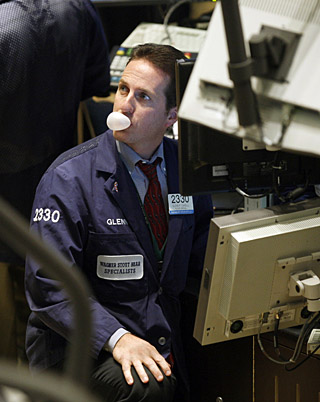 10日,美國紐約證券交易所內(nèi)一名交易員吹泡泡糖。當(dāng)日,由于投資者對經(jīng)濟(jì)疲軟導(dǎo)致公司盈利下滑的擔(dān)憂抵消了中國宣布巨額經(jīng)濟(jì)刺激計劃的利好影響,紐約股市道瓊斯、標(biāo)準(zhǔn)普爾和納斯達(dá)克三大股指均小幅下跌。新華社/路透 | 中國政府近日出臺進(jìn)一步擴(kuò)大內(nèi)需、促進(jìn)經(jīng)濟(jì)增長的措施,以抵御世界金融危機(jī)對中國的不利影響。措施出臺后,國際社會評價積極,市場反應(yīng)激烈。