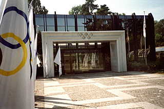 奧林匹克運動會最早始于公元前776年的古希臘的奧林匹亞地區(qū),公元393年,它被羅馬狄奧多西大帝廢除。1889年,法國彼埃爾·德·庫貝爾坦男爵倡議恢復奧林匹克運動。1894年正式成立了國際奧林匹克運動委員會,總部設在巴黎。1986年,國際奧委會遷入瑞士洛?偛看髽。圖為國際奧林匹克運動委員會總部大門。新華社記者