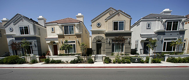 美國(guó)住房評(píng)估網(wǎng)站Zillow.com今年8月份發(fā)布報(bào)告說(shuō),在最近5年內(nèi)購(gòu)買(mǎi)房產(chǎn)的美國(guó)人中,大約1/3購(gòu)房者的抵押貸款負(fù)債已超過(guò)其房產(chǎn)價(jià)值。在加利福尼亞州的4個(gè)主要城市,90%的房主負(fù)債超過(guò)房產(chǎn)價(jià)值。這是在美國(guó)加州埃斯孔迪多拍攝的“買(mǎi)一贈(zèng)一”的房屋,這些房屋每套價(jià)值40萬(wàn)美元。新華社/路透 |
