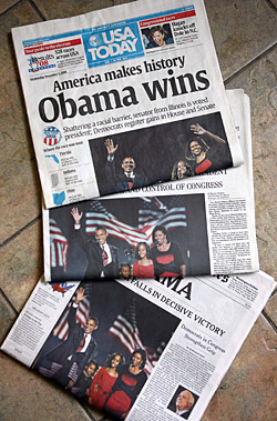 圖為《今日美國報》、《華盛頓郵報》和《紐約時報》的頭版版面。新華社記者