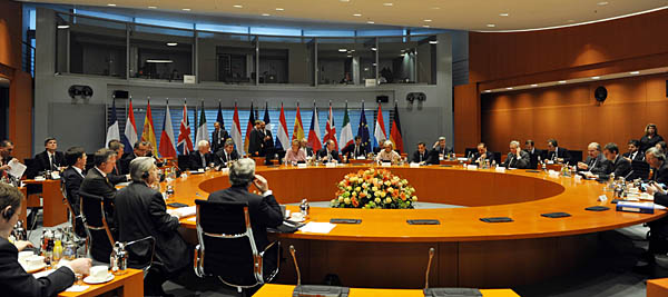 22日,歐洲多國首腦、財政部長和歐盟官員在德國首都柏林舉行籌備會議。新華社/法新 |