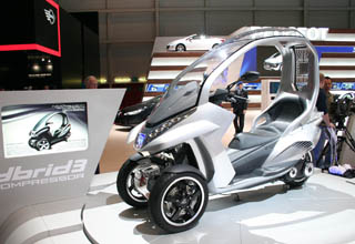 法國(guó)標(biāo)致混合動(dòng)力輕便摩托車(chē)概念車(chē),前輪電力、后輪汽油驅(qū)動(dòng)。 |