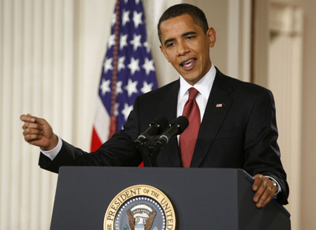 24日,美國總統(tǒng)奧巴馬在白宮舉行第二次黃金時(shí)間記者會(huì)。奧巴馬當(dāng)晚說,美國政府正在“全面出擊”應(yīng)對(duì)經(jīng)濟(jì)危機(jī),并已看到取得進(jìn)展的跡象。新華社/路透 | 美國總統(tǒng)奧巴馬24日表示,他反對(duì)以其他貨幣取代美元的全球儲(chǔ)備貨幣地位。美國財(cái)長(zhǎng)蓋特納和美聯(lián)儲(chǔ)主席伯南克同時(shí)在國會(huì)聽證會(huì)上表達(dá)了類似觀點(diǎn)。 24日當(dāng)晚,奧巴馬自上任以來第二次在黃金時(shí)段舉行新聞發(fā)布會(huì)。奧巴馬表示,他認(rèn)為不需要(新的)全球儲(chǔ)備貨幣,還強(qiáng)調(diào)說美元依舊“極其堅(jiān)挺”。他說,美元表現(xiàn)強(qiáng)勁,反映出投資者仍視美國為世界經(jīng)濟(jì)最強(qiáng)國和政治體制最穩(wěn)定的國家,“我相信,各界對(duì)我們最終闖過難關(guān)和經(jīng)濟(jì)繁榮前景有信心”。 奧巴馬還概述了美國政府到目前為止為解決危機(jī)所采取的重要步驟。他說,政府的戰(zhàn)略是創(chuàng)造就業(yè),幫助負(fù)責(zé)任的購房者,重新啟動(dòng)信貸市場(chǎng),支持經(jīng)濟(jì)長(zhǎng)期增長(zhǎng)。奧巴馬對(duì)通過實(shí)施政府戰(zhàn)略戰(zhàn)勝危機(jī)表示樂觀。但他強(qiáng)調(diào),危機(jī)不是一夜之間形成的,解決危機(jī)也需要時(shí)間。他請(qǐng)求國民給予政府更多的耐心和理解,來戰(zhàn)勝這場(chǎng)幾十年來最嚴(yán)重的經(jīng)濟(jì)危機(jī)。 另據(jù)路透社報(bào)道,在24日的美國國會(huì)聽證會(huì)上,財(cái)長(zhǎng)蓋特納和美聯(lián)儲(chǔ)主席伯南克也為美元進(jìn)行辯護(hù)。報(bào)道稱,美國明尼蘇達(dá)州共和黨議員巴克曼曾向蓋特納發(fā)問,面對(duì)放棄美元而采用一種全球儲(chǔ)備貨幣這樣的建議,“你是否會(huì)無條件地加以拒絕”?蓋特納回答說,他會(huì)這樣做。同樣的問題擺在伯南克面前,他的回答與蓋特納如出一轍。 俄羅斯方面上周曾說,俄方計(jì)劃在下月初召開的二十國集團(tuán)領(lǐng)導(dǎo)人會(huì)議上提議,創(chuàng)立一種新的全球儲(chǔ)備貨幣。俄方稱,這一設(shè)想已獲得巴西、印度、南非等新興經(jīng)濟(jì)體支持。此外,中國人民銀行行長(zhǎng)周小川日前撰文指出,金融危機(jī)警示我們必須創(chuàng)造性地改革和完善現(xiàn)行國際貨幣體系,推動(dòng)國際儲(chǔ)備貨幣向著幣值穩(wěn)定、供應(yīng)有序、總量可調(diào)的方向完善,才能從根本上維護(hù)全球經(jīng)濟(jì)金融穩(wěn)定。