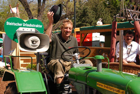 22日,在奧地利維也納,一名參觀者在一年一度的施泰爾馬克州旅游宣傳周活動(dòng)上試開(kāi)拖拉機(jī)。施泰爾馬克州地處奧地利南部山區(qū),是奧地利的傳統(tǒng)農(nóng)業(yè)州。該州充分利用當(dāng)?shù)孛利惖淖匀伙L(fēng)光資源,大打特色旅游,使旅游業(yè)也成為當(dāng)?shù)氐闹匾?jīng)濟(jì)支柱產(chǎn)業(yè)。