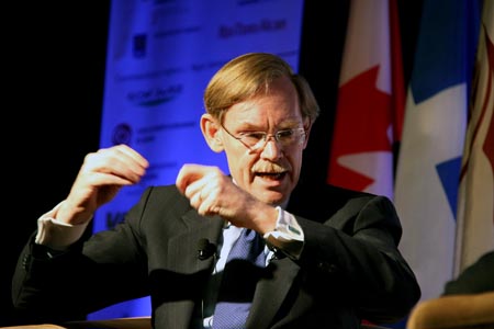 8日,在加拿大蒙特利爾,世界銀行行長(zhǎng)佐利克在第15屆美洲國(guó)際經(jīng)濟(jì)論壇的午餐會(huì)上發(fā)表講話。新華社記者楊士龍攝 |