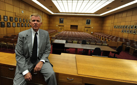 15日,美國加利福尼亞州(加州)洛杉磯高等法院法官坐在空曠的審判廳里。當(dāng)天,加州各法院關(guān)門不審理大部分案件。加州目前面臨高達263億美元的財政預(yù)算缺口。為彌補這一缺口,加州政府被迫采取了一系列措施,包括發(fā)放政府借據(jù)、裁員以及強制休假等。其中,法院也在未來12個月內(nèi)每月關(guān)門一天,以節(jié)省開支。