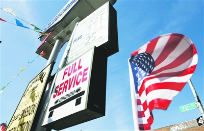 美國紐約的一個(gè)加油站拍攝的油價(jià)牌。新華社記者劉欣