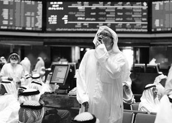 2008年9月15日,在科威特股票交易所,一股民仰頭觀望股票交易價(jià)格變化。當(dāng)天,科威特股市下跌488點(diǎn),創(chuàng)下了一天內(nèi)降幅最高紀(jì)錄。新華社發(fā)(努法攝) |