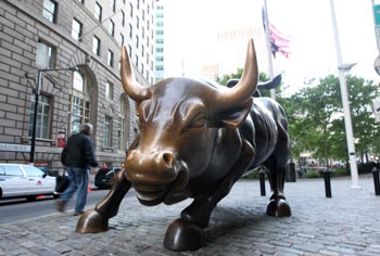 在美國紐約拍攝的華爾街銅牛。新華社記者 劉欣