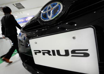 在日本首都東京,一名男子從一輛豐田普銳斯混合動(dòng)力車旁走過(guò)。新華社/法新 |