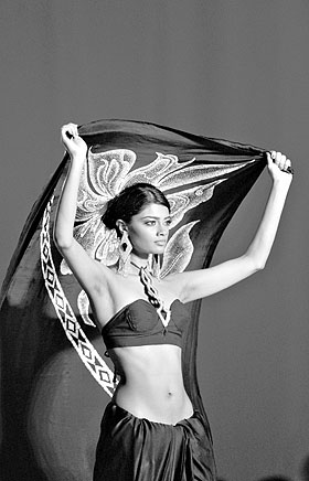 在斯里蘭卡首都科倫坡,模特在時裝展上展示富有當(dāng)?shù)仫L(fēng)情的服飾。新華社/法新