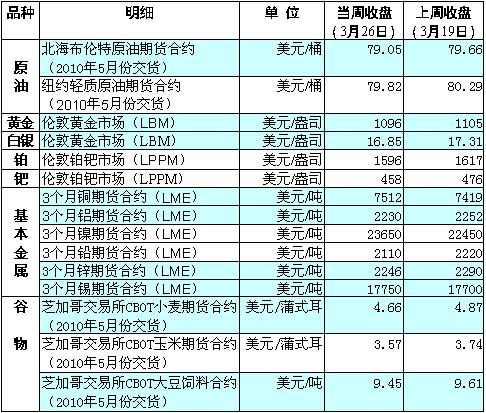 受歐盟計劃解決希臘債務危機以及美國疲軟的經濟增長等因素的影響,國際大宗商品價格本周普遍下降。 受到美國原油庫存大幅增加以及美元對歐元走強等因素影響,國際油價在23日小幅收高后,24日全面回落。24日美國能源部公布的庫存報告顯示,美國商業(yè)原油庫存增加了730萬桶,該數字大大高于此前市場預期100多萬桶。評級機構降低了對葡萄牙的主權評級,美元對歐元的匯率再次創(chuàng)出10個月的新高,造成以美元計價的商品期貨價格全面走軟。 分析人士指出,盡管歐洲領導人對拯救希臘債務達成一致,但是市場交易中的擔憂猶存。24日,由于葡萄牙2009年財政表現不佳,惠譽將葡萄牙的主權債務評級調低一個級別至“AA—”;同時,由于經濟復蘇脆弱,商業(yè)和消費性開支乏力,美國經濟第四季度的增速低于此前預期。美國商務部最新數據顯示,第四季度GDP增幅修正為5.6%,低于此前預估的5.9%。 巴克萊資本分析師研究報告指出:“受壓于更多的市場擔憂,大多數大宗商品價格走低。對歐元區(qū)政治風險的擔憂揮之不去,以及美國宏觀經濟數據的不振影響到了價格走勢! 國際金價24日受打壓亦跌破了1100美元關口。分析機構指出,隨著經濟復蘇與流動性緊縮的交織,主要經濟體的加息進程、通貨膨脹、歐元區(qū)的主權債務危機進展以及黃金的需求和IMF的剩余售金去向已成為主導黃金市場走勢的最主要因素。 基本金屬方面,除了銅價略有上漲外,大多數基本金屬本周均出現走跌態(tài)勢,但是巴克萊資本分析師指出,“越來越多的證據表明,全球基本金屬需求從所未有的最強勁復蘇正在成型”。 芝加哥交易所谷物期貨全線下跌,受到諸多利空因素影響,未來短期內小麥價格或將延續(xù)當周跌勢。國際谷物理事會日前表示,2010至2011年度的小麥庫存將增至1.99億噸的9年高位。而有關歐洲和俄羅斯向美國小麥的傳統(tǒng)出口市場拉丁美洲出口小麥的消息,表明價格較高的美國小麥的國際需求正日益縮減。