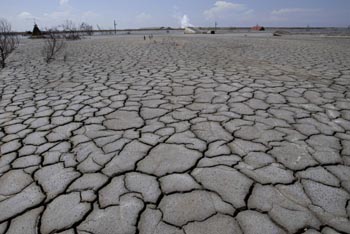這是2007年5月29日,印度尼西亞東爪哇省的一個(gè)村莊附近,土地因干旱而龜裂。新華社發(fā) |