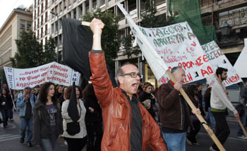 4月27日,在希臘首都雅典,希臘民眾示威抗議政府申請(qǐng)啟動(dòng)歐盟-IMF救助機(jī)制,反對(duì)采取更嚴(yán)厲的緊縮政策。新華社發(fā)(馬里奧斯·羅洛斯