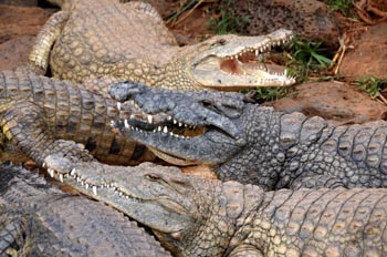 幾條成年鱷魚(yú)在內(nèi)羅畢鱷魚(yú)樂(lè)園生活。新華社記者 徐速繪