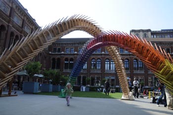 在倫敦設(shè)計(jì)節(jié)期間,各種創(chuàng)意隨處可見(jiàn)。在維多利亞和埃爾伯特博物館的廣場(chǎng)上,藝術(shù)家們用椅子搭起一道道彩虹。新華社記者 王亞宏