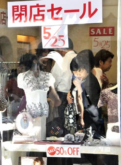 在日本首都東京,購物者在挑選打折商品。(資料照片)新華社/法新 |