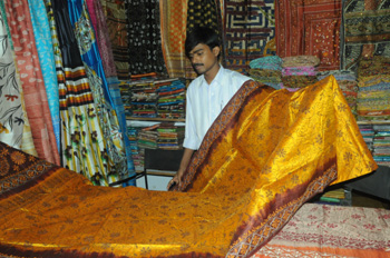 圖為印度紡織部2010年6月份在孟買世貿(mào)中心舉辦的一個手搖紡織絲織品展銷會上的情形。劉亞南