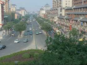 西大街位于西安城墻內(nèi)東西中軸線的西部,東起鐘樓,西至西門,全長(zhǎng)2088米。