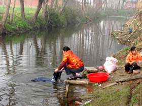 經(jīng)濟(jì)條件較差的農(nóng)民仍把 污河當(dāng)成了生活用水水源地 |