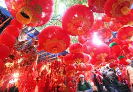 連日來,不少市民在重慶朝天 門節(jié)約街上選購年貨裝飾品。 本報(bào)記者:周衡義
