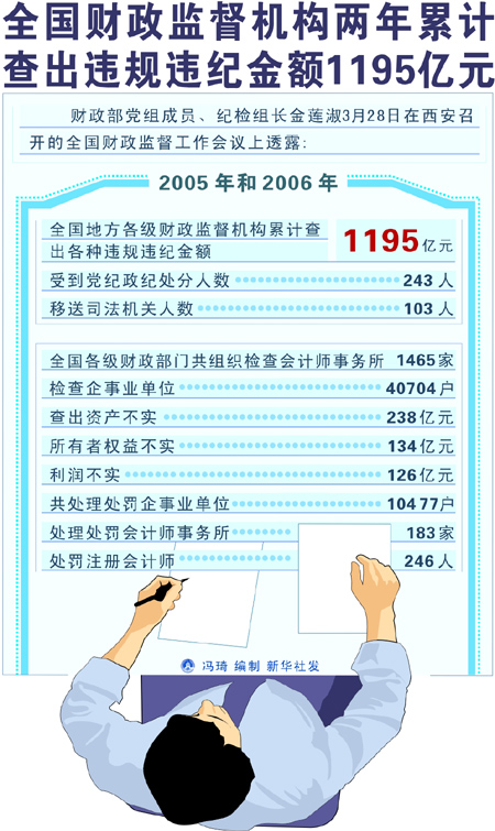 全國財(cái)政監(jiān)督機(jī)構(gòu)兩年累計(jì)查出違規(guī)違紀(jì)金額1195億元[圖]